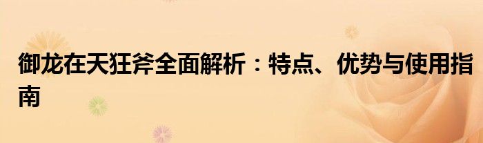 御龙在天狂斧全面解析:特点、优势与使用指南