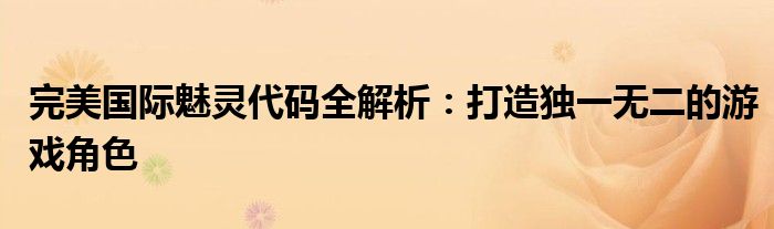 本文将详细介绍完美国际游戏中魅灵角色的代码全解析,帮助玩家更好地理解和定制自己的游戏角色,打造独一无二的游戏体验。
