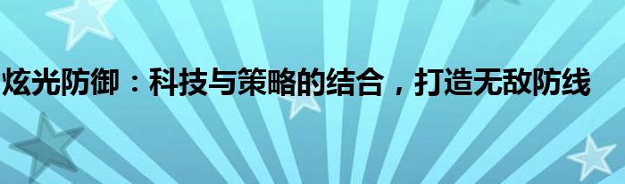 炫光防御:科技与策略的结合,打造无敌防线