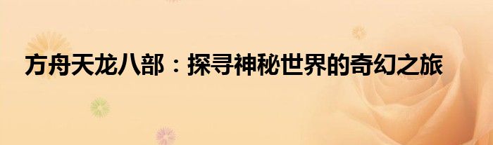 方舟天龙八部:探寻神秘世界的奇幻之旅