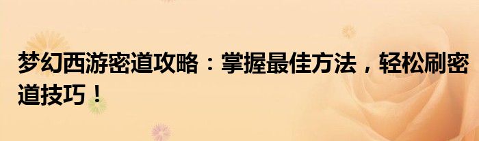 介绍梦幻西游中的密道攻略,针对玩家如何快速有效地刷密道,本文将介绍一些技巧和策略。从准备阶段到实战操作,让玩家轻松掌握最佳方法,提高游戏效率。