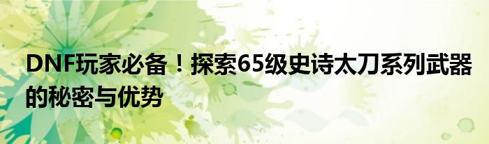 DNF玩家必备!探索65级史诗太刀系列武器的秘密与优势