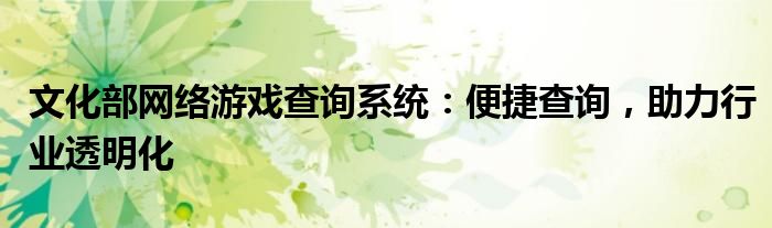 文化部网络游戏查询系统:便捷查询,助力行业透明化