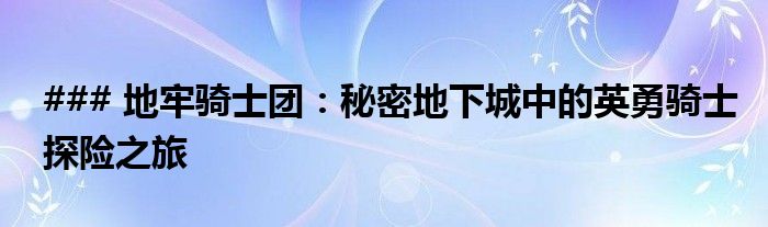 在一个遥远的神秘世界中,存在着一个不为人知的秘密地下城——“地牢骑士团”。这支英勇的骑士团队深入地下迷宫,为了保卫世界和寻找传说中的宝藏,他们踏上了一段充满危险与挑战的探险之旅。本文将带您走进地牢骑士团的世界,感受他们冒险旅程中的荣耀与牺牲。