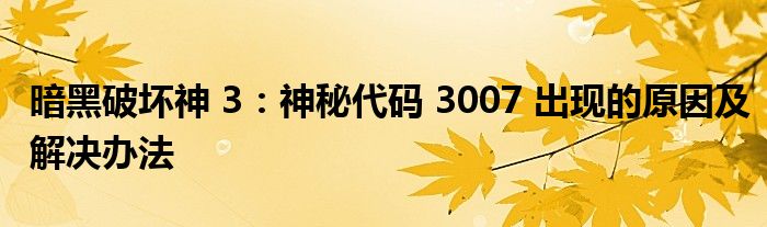 本文主要介绍了在游戏《暗黑破坏神 3》中遇到的错误代码 3007 的相关问题。该错误可能导致玩家无法正常游戏,本文将会分析错误原因并给出解决方案。阅读本文后,你将了解到如何应对和解决代码 3007 所带来的困扰。