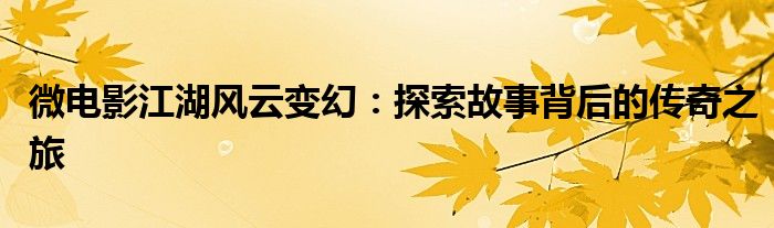 微电影江湖,这是一个充满创意与激情的世界。在这个世界里,每一部微电影都是一个独立的故事,每一部微电影都是江湖中的一段传奇。今天,让我们一起走进微电影江湖,探索故事背后的精彩世界。