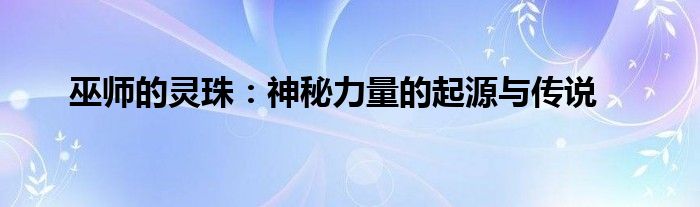 “巫师的灵珠”这一概念,起源于古老的文明和神话传说。在诸多神话故事中,灵珠被视为拥有神秘力量的宝石,巫师通过掌握灵珠,能够施展强大的魔法,实现各种不可思议的奇迹。