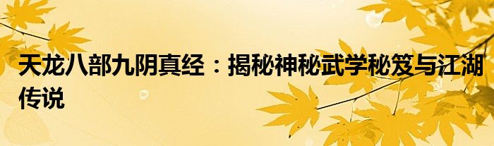 天龙八部九阴真经:揭秘神秘武学秘笈与江湖传说