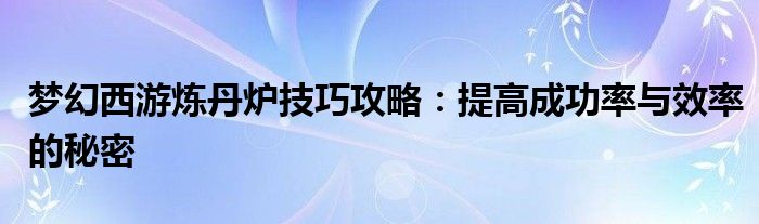 梦幻西游炼丹炉技巧攻略:提高成功率与效率的秘密