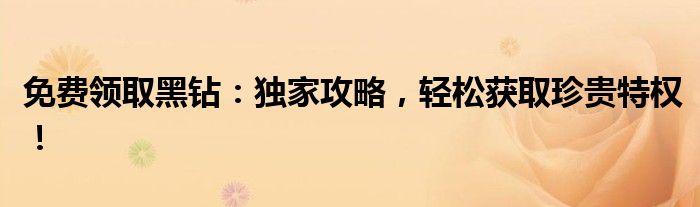 免费领取黑钻:独家攻略,轻松获取珍贵特权!