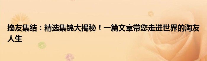 捣友集结:精选集锦大揭秘!一篇文章带您走进世界的淘友人生