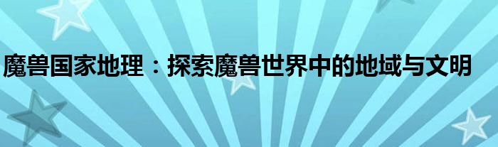 魔兽国家地理:探索魔兽世界中的地域与文明