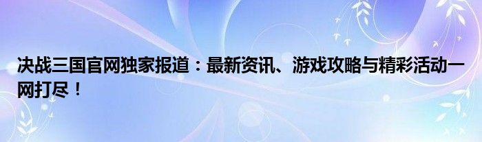 决战三国官网独家报道:最新资讯、游戏攻略与精彩活动一网打尽!