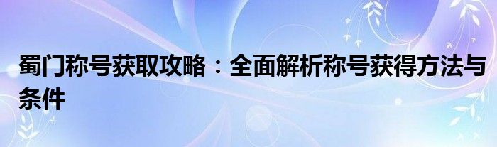 蜀门称号获取攻略:全面解析称号获得方法与条件