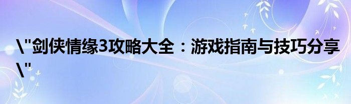 "剑侠情缘3攻略大全:游戏指南与技巧分享"