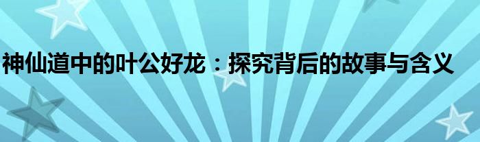 神仙道中的叶公好龙:探究背后的故事与含义
