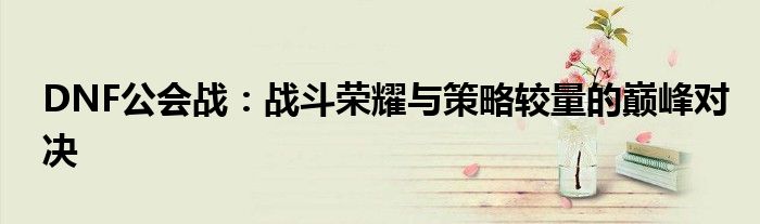 DNF公会战:战斗荣耀与策略较量的巅峰对决