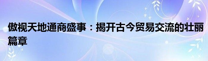 傲视天地通商盛事:揭开古今贸易交流的壮丽篇章