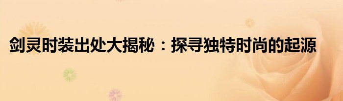 剑灵时装出处大揭秘:探寻独特时尚的起源