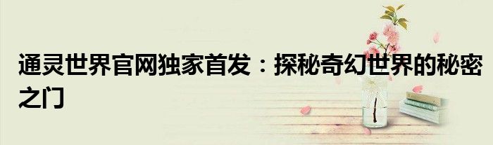 通灵世界官网独家首发:探秘奇幻世界的秘密之门
