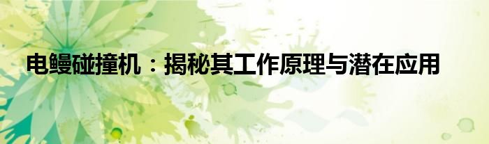 电鳗碰撞机:揭秘其工作原理与潜在应用