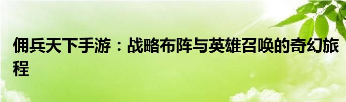 佣兵天下手游:战略布阵与英雄召唤的奇幻旅程