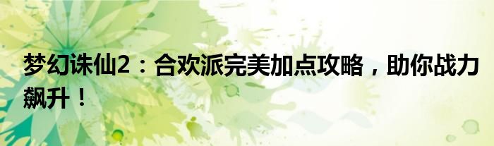 本文将为你详细介绍在《诛仙2》游戏中,合欢派的完美加点方法,帮助玩家更好地提升角色战力,享受游戏乐趣。