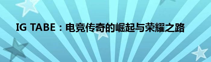 随着电子竞技的飞速发展,IG TABE这个名字已经成为了电竞界的传奇。作为一个电竞选手,IG TABE以其出色的表现和天赋,在多个领域都取得了骄人的成绩。今天,我们就来一起探讨IG TABE的电竞传奇与荣耀之路。