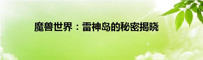 在广袤的魔兽世界中,有一个神秘的地方,名为雷神岛。这个岛屿隐藏着许多秘密,等待着勇敢的冒险者前来探索。今天,我们将一起揭开雷神岛神秘的面纱,探寻其中隐藏的秘密。