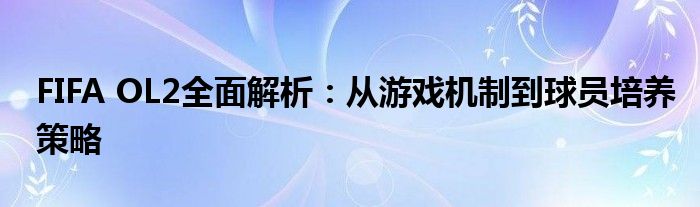FIFA OL2全面解析:从游戏机制到球员培养策略