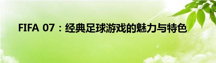 FIFA 07是一款经典足球游戏,该游戏在全球范围内都拥有众多忠实的玩家。在这款游戏中,玩家可以体验到足球比赛的紧张刺激和激情四溢。本文将介绍FIFA 07的魅力与特色。