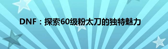 DNF:探索60级粉太刀的独特魅力