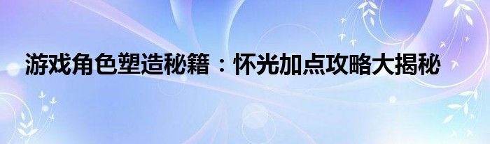 游戏角色塑造秘籍:怀光加点攻略大揭秘