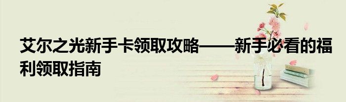 新手卡是《艾尔之光》游戏为新手玩家准备的一种特殊福利。通过领取新手卡,玩家可以获得一定的游戏资源和优势,帮助自己更快地适应游戏,提升游戏体验。