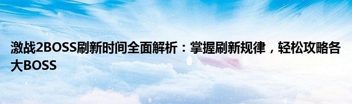在激战2中,BOSS的刷新时间是有一定规律的。通常情况下,BOSS会在一定的时间段内随机刷新,而且每个BOSS的刷新时间都有所不同。因此,要想成功攻略BOSS,就需要不断观察、摸索BOSS的刷新时间规律。