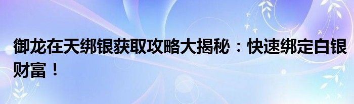 御龙在天绑银获取攻略大揭秘:快速绑定白银财富!