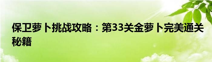 通过以上攻略和技巧,相信你可以轻松通关保卫萝卜挑战第33关并获得金萝卜。希望你在游戏中度过愉快的时光!