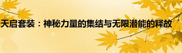 天启套装的设计理念是“潜能的释放”,强调玩家在冒险过程中能够不断挖掘装备的潜能,实现自我突破。设计师们注重装备的成长性,让玩家在冒险的过程中,逐渐解锁装备的隐藏属性,实现个性化的定制。