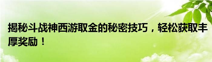 揭秘斗战神西游取金的秘密技巧,轻松获取丰厚奖励!