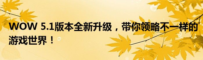 WOW 5.1版本全新升级,带你领略不一样的游戏世界!