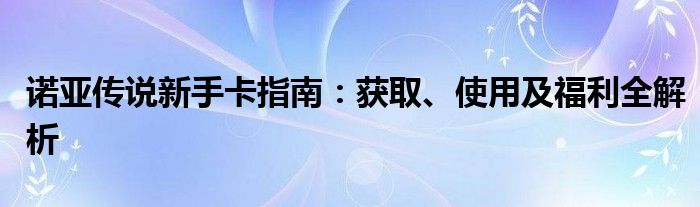 诺亚传说新手卡指南:获取、使用及福利全解析