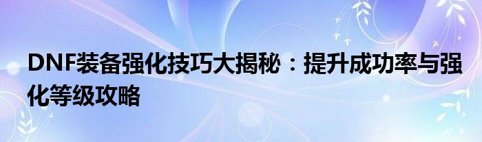 DNF装备强化技巧大揭秘:提升成功率与强化等级攻略