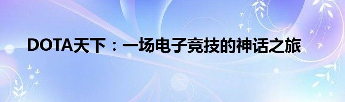 DOTA天下:一场电子竞技的神话之旅