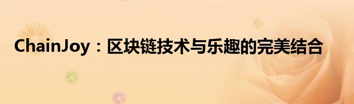 ChainJoy:区块链技术与乐趣的完美结合