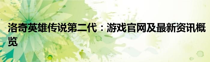 洛奇英雄传说第二代:游戏官网及最新资讯概览