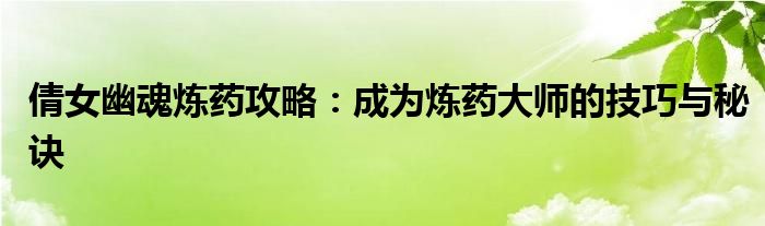 倩女幽魂炼药攻略:成为炼药大师的技巧与秘诀