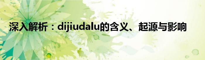 深入解析:dijiudalu的含义、起源与影响
