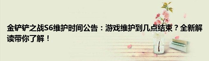 本文将详细介绍金铲铲之战S6版本的维护情况,包括维护开始时间、预计维护时长以及维护内容等,以帮助玩家了解游戏维护的详细情况。