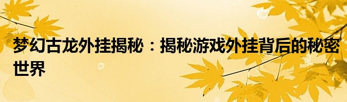梦幻古龙外挂揭秘:揭秘游戏外挂背后的秘密世界