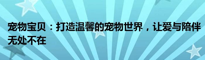 宠物宝贝:打造温馨的宠物世界,让爱与陪伴无处不在